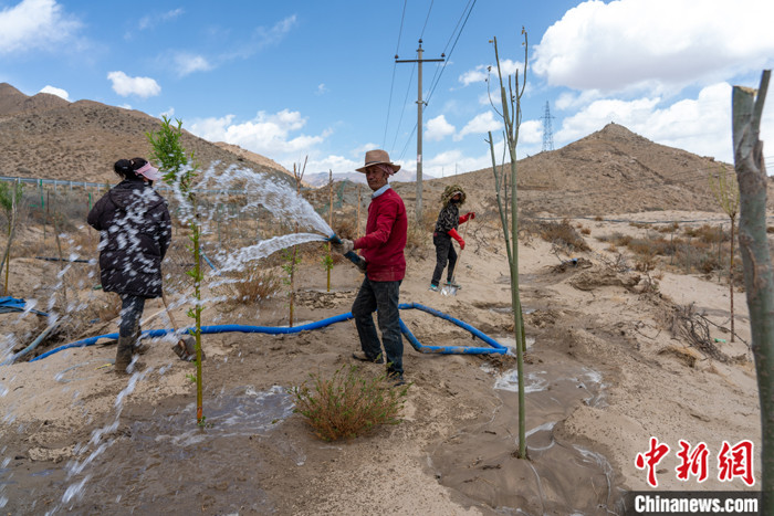 他說(shuō),雅魯藏布江兩岸的沙地多是流動(dòng)沙,沙土沒有樹木生長(zhǎng)所需的營(yíng)養(yǎng),種樹前先要填生物肥、秸稈等。此外,樹苗還面臨夏季沙地溫度過高以及水源缺乏等問題?!半m然地處江邊,但種樹點(diǎn)離河道有五六公里甚至更遠(yuǎn)?!泵侠麞|說(shuō),他們篩選、馴化本地植物作為種苗,澆灌水源采取就地打井的方式取水,在沙地上植樹造林。