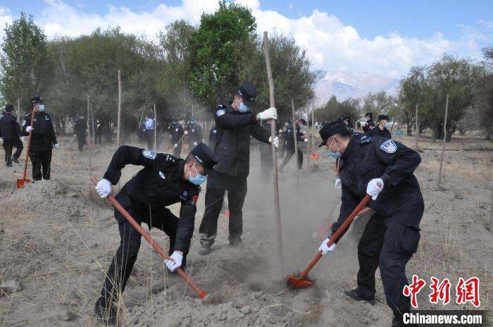 圖為西藏邊檢總站輪訓(xùn)大隊(duì)民警植樹活動(dòng)現(xiàn)場 ?!∥鞑剡厵z總站輪訓(xùn)大隊(duì)供圖
