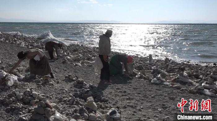圖為牧民在瑪旁雍錯自然保護區(qū)內(nèi)撿拾垃圾?!∝暽@?攝