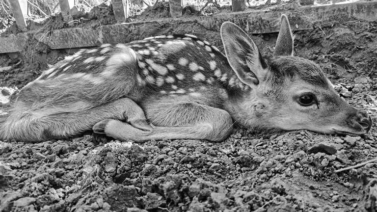 5月26日10時許,記者來到了南山公園,在飼養(yǎng)梅花鹿的地方見到了旦增群培。在他的帶領下,記者有幸近距離見到了剛出生一周的梅花鹿寶寶“日瓦”,它正懶洋洋地趟在一處樹蔭下休息。