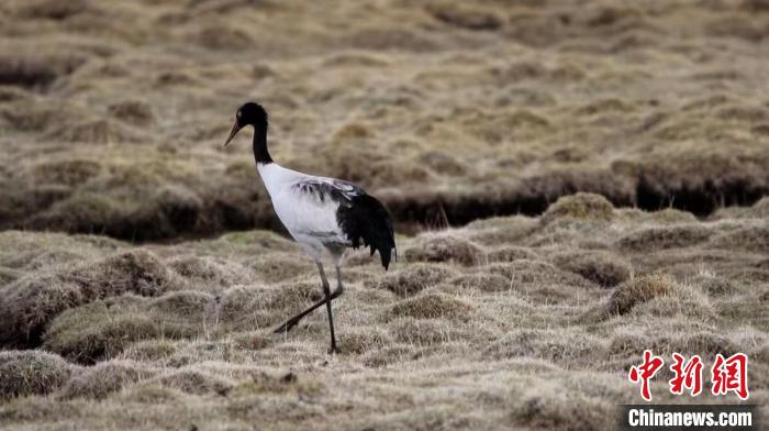 圖為一只黑頸鶴在濕地中行走。 天峻縣融媒體中心 供圖