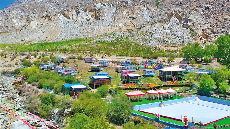 拉薩的夏天,是林卡的季節(jié)。進(jìn)入夏季以來,前來維巴村林卡游玩的市民絡(luò)繹不絕,一派熱鬧景象。走進(jìn)這些林卡,綠樹掩映、流水潺潺、鮮花開放、溫度宜人,一頂頂帳篷散落在小溪邊更顯詩意,帳篷旁寬敞干凈的游泳池在陽光的照耀下泛著點(diǎn)點(diǎn)金光,人們漫步草地上悠閑地賞景,享受著夏日里的清涼。目前,維巴村共有25家大大小小的林卡,其中不乏網(wǎng)紅林卡,一到節(jié)假日林卡里就會出現(xiàn)火爆的場面。