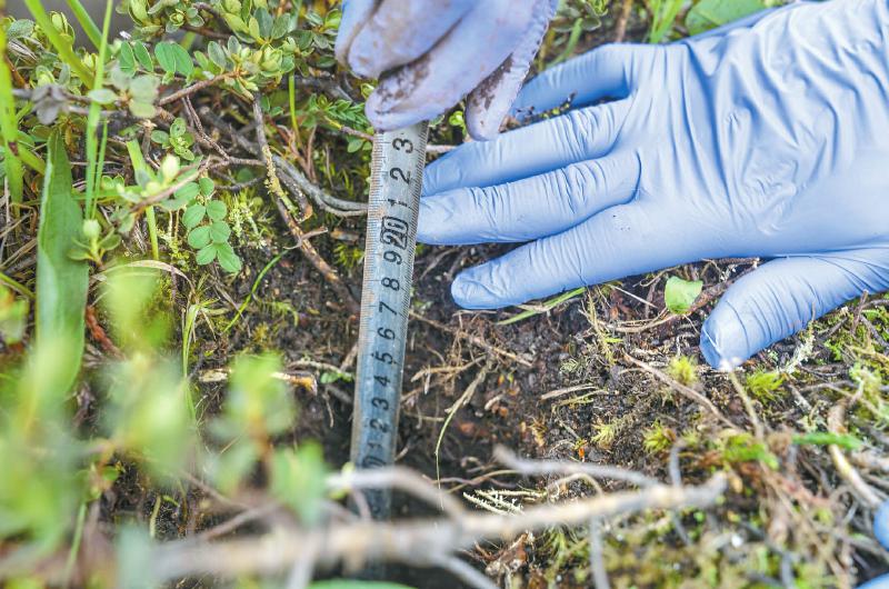 前期的研究表明,海拔越高,增溫速率越明顯。王濤站起身,山對面的雪山下,海拔4500米的地方,觀測站還布設了同樣的增溫設施。“我們就是要搞清楚,這種增溫會對土壤碳庫產(chǎn)生什么影響,影響的機制是什么?!?/p>