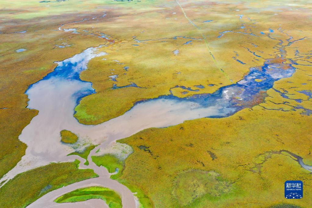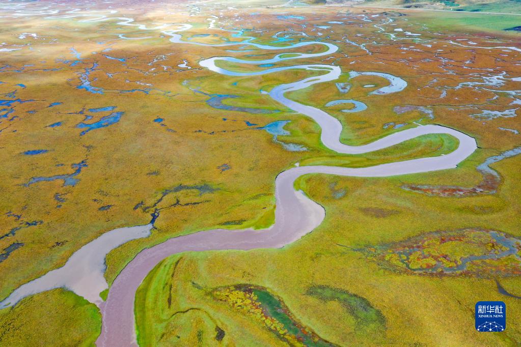 這是瑪曲縣阿萬倉濕地內(nèi)的一處沼澤(9月17日攝,無人機(jī)照片)。新華社記者 郎兵兵 攝
