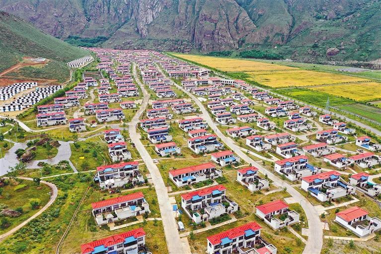易地搬遷脫貧一批。2016年以來,累計(jì)投入198億元,建成964個易地扶貧搬遷安置點(diǎn),26.6萬人搬遷入住。圖為西藏自治區(qū)加查縣共康村易地扶貧搬遷點(diǎn)。