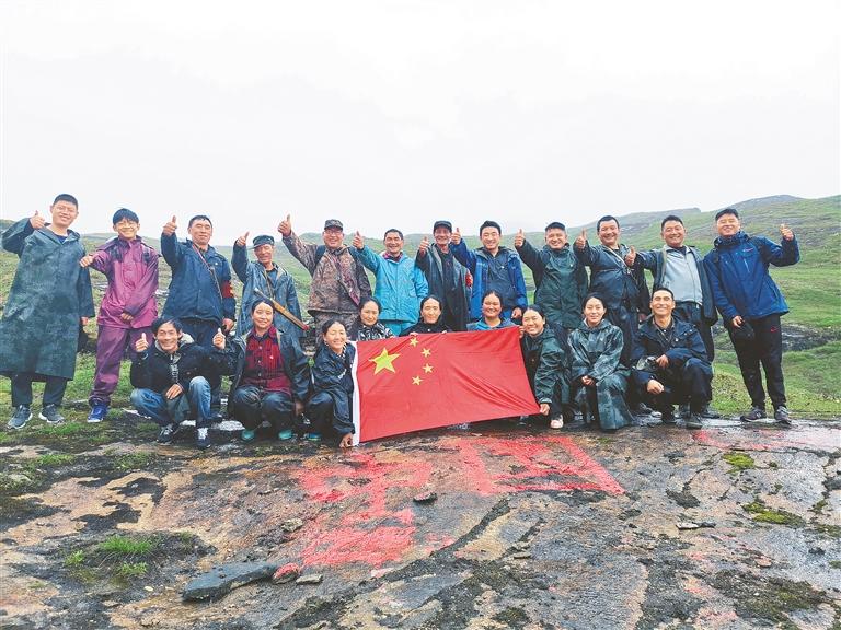 圖為“家是玉麥,國是中國”,人人爭做神圣國土守護(hù)者、幸福家園建設(shè)者。圖為“七一勛章”獲得者卓嘎和同為“時(shí)代楷?!钡拿妹醚胱诘诌呇策墶?/p>