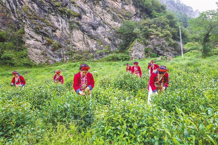 圖為加快建設(shè)邊境沿線發(fā)展帶,邊境一線各族群眾生活有保障、致富有渠道、守邊有動(dòng)力、發(fā)展有支撐。圖為西藏自治區(qū)錯(cuò)那縣茶葉專業(yè)合作社農(nóng)牧民采摘新茶。
