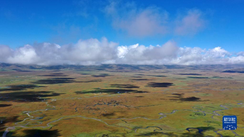 這是2022年9月21日拍攝的瑪曲縣阿萬倉濕地(無人機(jī)照片)。新華社記者 陳斌 攝