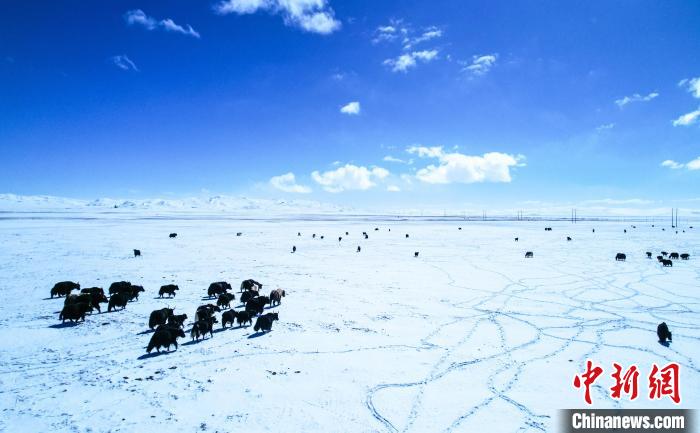 圖為黃河源頭瑪多,牦牛群在雪地中覓食。 祁緒龍 攝