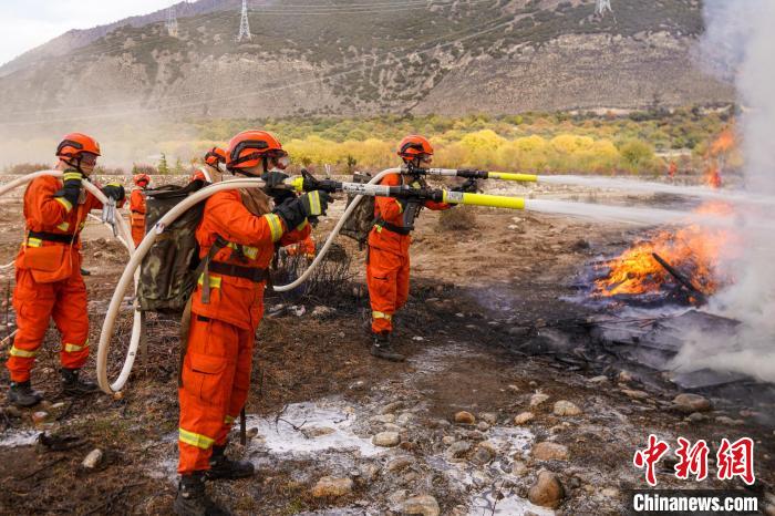 圖為林芝市2022年處置森林火災(zāi)應(yīng)急演練現(xiàn)場(chǎng)。 楊永龍 攝