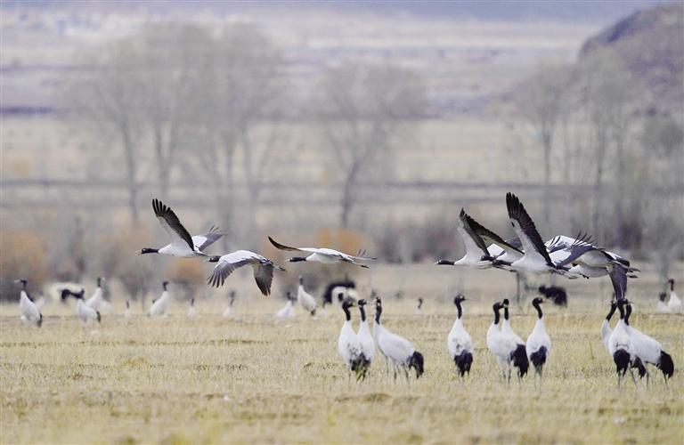 “高原精靈”黑頸鶴飛抵拉薩林周越冬