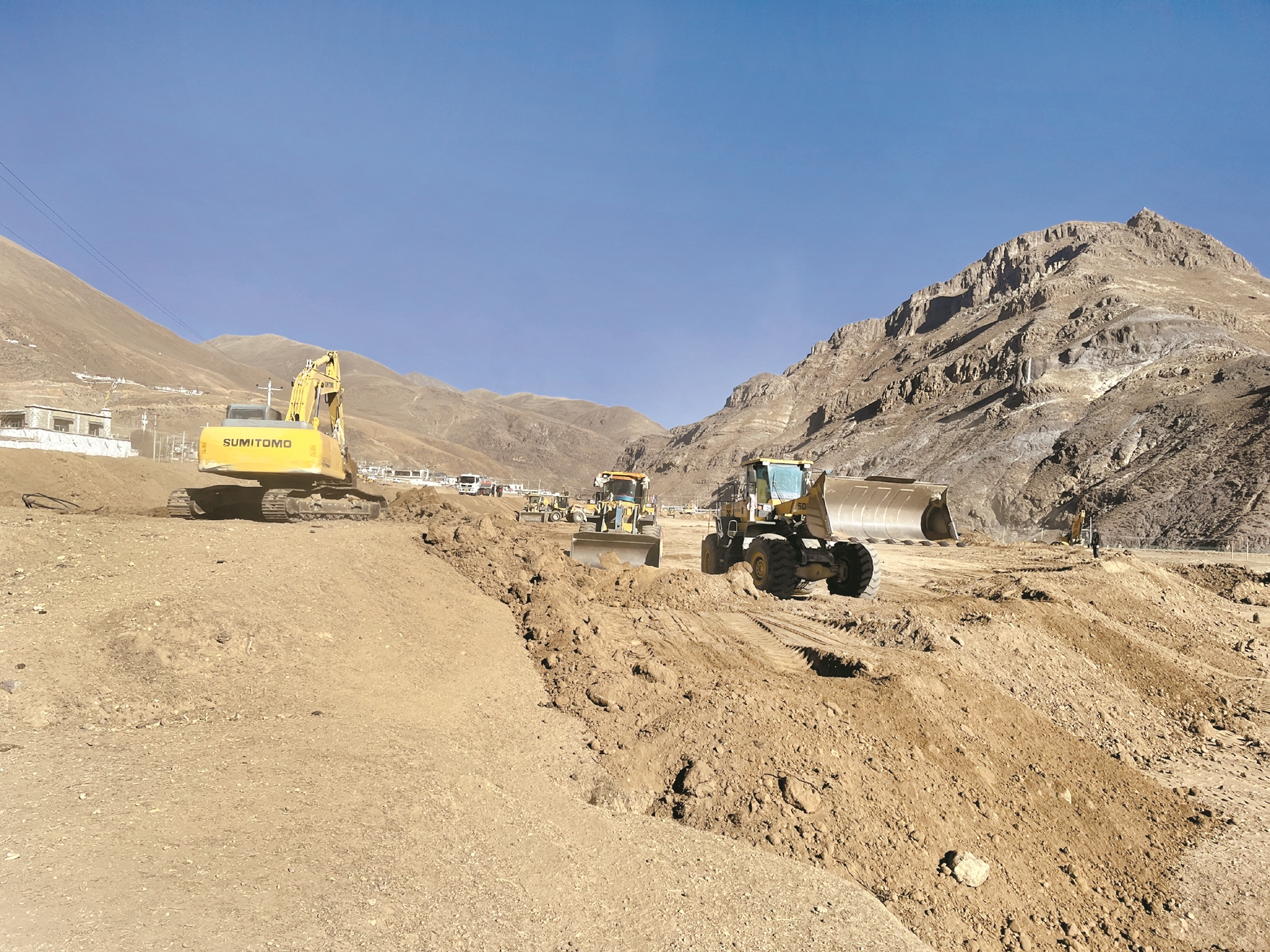 在堆龍德慶區(qū)德慶鎮(zhèn)邱桑村高標(biāo)準(zhǔn)農(nóng)田建設(shè)項(xiàng)目現(xiàn)場,鉤機(jī)和推土機(jī)等大型機(jī)械在田間往來穿梭作業(yè),在藍(lán)天白云的映襯下格外耀眼,經(jīng)過村民的“精心雕琢”,一片片坡地變成了一道道梯田。眼見著糧田變“良”田,邱桑村黨總支書記索朗羅布的眼中滿是對明年豐收的憧憬和喜悅?!拔覀兇逵?600畝的土地參與到高標(biāo)準(zhǔn)農(nóng)田建設(shè),該項(xiàng)目主要由我們村委會(huì)負(fù)責(zé),投入了400多位勞力和20多個(gè)機(jī)械,農(nóng)閑人不閑,他們能在這個(gè)冬天有不錯(cuò)的收入,未來干農(nóng)活也能更加現(xiàn)代化。”