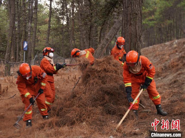 圖為森林消防員正在進行林下可燃物清理?!“鸵藚^(qū)森林消防中隊供圖