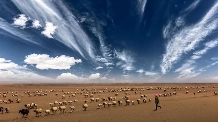 圖為焦生福作品《穿越沙漠的羊群》?!∏嗪J∑钸B山自然保護(hù)協(xié)會(huì)供圖