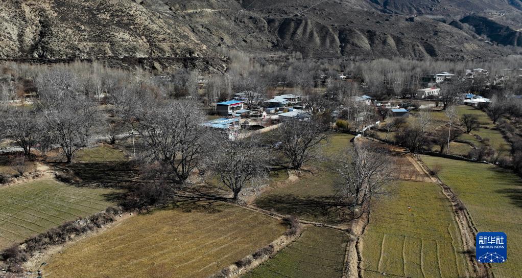 核桃樹環(huán)抱的山南市加查縣拉崗村(2月1日攝 無人機照片)。新華社記者晉美多吉 攝