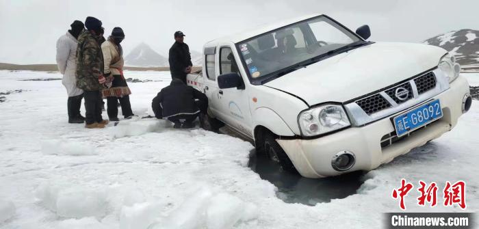 圖為巡護(hù)車輛陷車?!≈x昆軍供圖