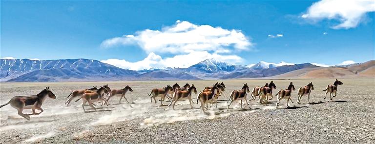 圖為在羌塘國家級自然保護區(qū)內(nèi)奔跑的藏野驢。邊巴多吉 攝 記者 溫凱 永青 洛桑旦增