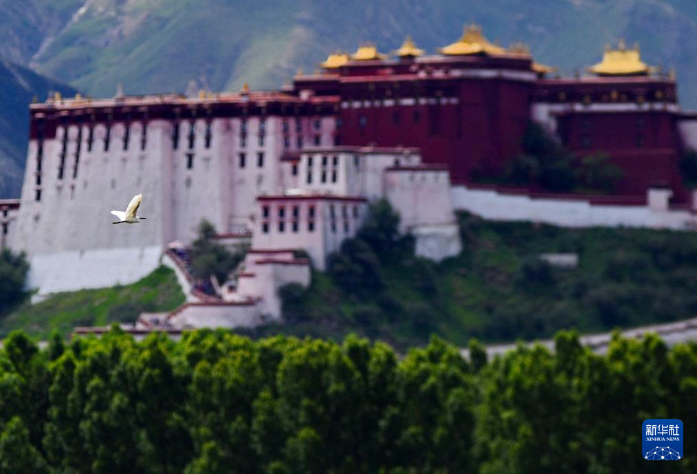 白鷺在拉魯濕地上空盤(pán)旋(7月23日攝)。新華社記者 張汝鋒 攝