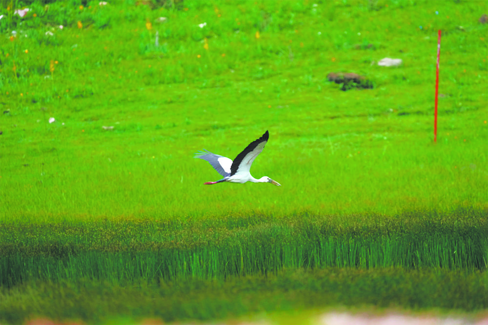 我國于2006年在云南大理首次記錄到鉗嘴鸛。此次記錄到鉗嘴鸛的玉樹地區(qū)海拔超過3800米,為該物種分布最高海拔記錄,填補了鉗嘴鸛在高海拔地區(qū)的分布空白,進一步擴大了鉗嘴鸛在我國的分布范圍。