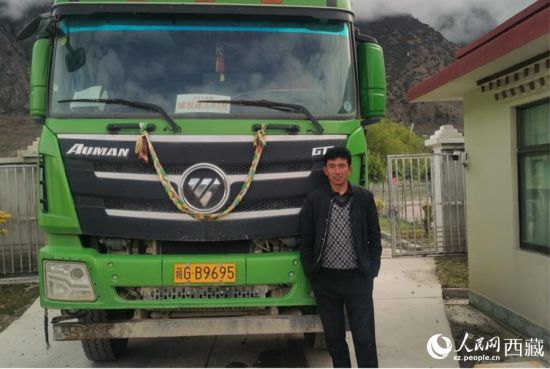 達(dá)瓦堅(jiān)參和他的運(yùn)輸車。 人民網(wǎng) 李海霞攝