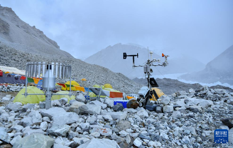 位于海拔5700米卓奧友峰前進(jìn)營(yíng)地的自動(dòng)氣象站(9月29日攝)。新華社記者晉美多吉 攝