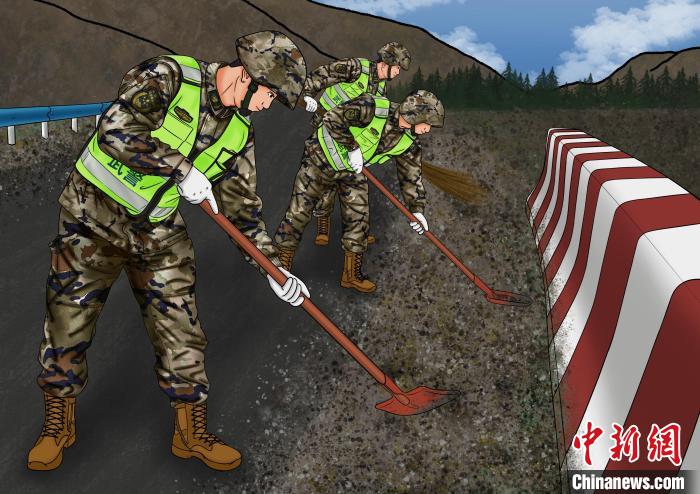 青海武警手繪“環(huán)?!焙蠛粲醣Wo高原生態(tài)
