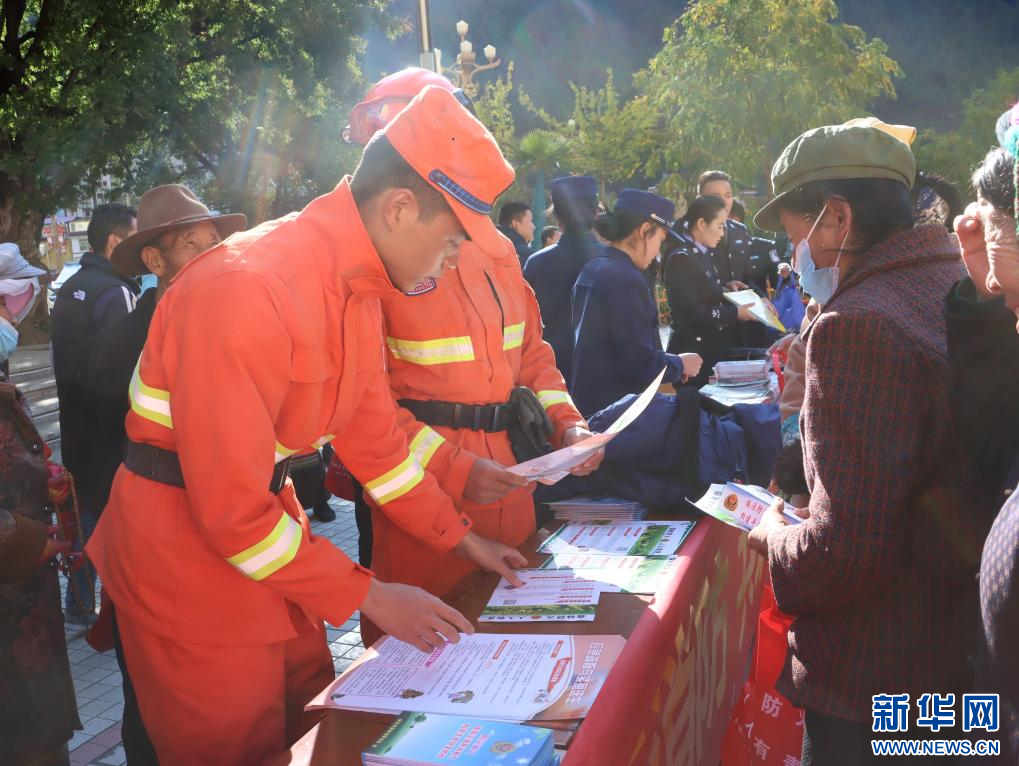 活動(dòng)現(xiàn)場(chǎng),林芝市森林消防支隊(duì)發(fā)放宣傳手冊(cè)。