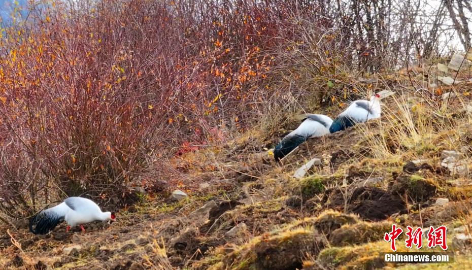 據(jù)班瑪縣官方介紹,班瑪縣以前只發(fā)現(xiàn)過一兩只白馬雞,此次發(fā)現(xiàn)30多只白馬雞在一起也比較罕見。