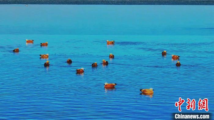 圖為水庫上成群鳥類覓食休憩。海晏融媒供圖