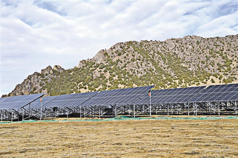 圖為那曲市索縣熱瓦鄉(xiāng)熱熱村50WM光伏儲能建設(shè)項目。記者 王敏 攝