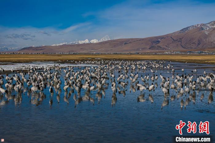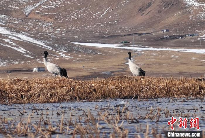圖為拉薩市當(dāng)雄縣阿熱濕地里的黑頸鶴。索朗多杰 攝