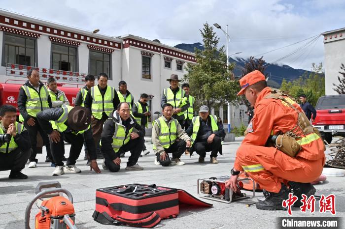 圖為森林消防隊員正在向護(hù)林員講解裝備知識。西繞拉翁 攝