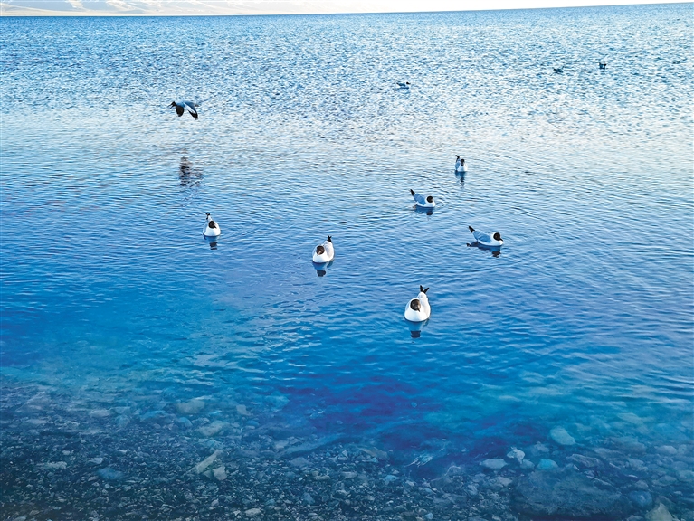 山與水相擁而生,文與旅相融而興。5月18日傍晚,在納木措,遠(yuǎn)遠(yuǎn)望去,蔚藍(lán)遼闊的湖面與天際連成一線,清澈的湖水與遠(yuǎn)處的念青唐古拉山相互輝映、水天一色,湖水輕柔地拍打岸邊砂石,一群棕頭鷗在消逝的湖面上嬉戲玩鬧,邀請(qǐng)游客共賞這絕美的視覺盛宴。