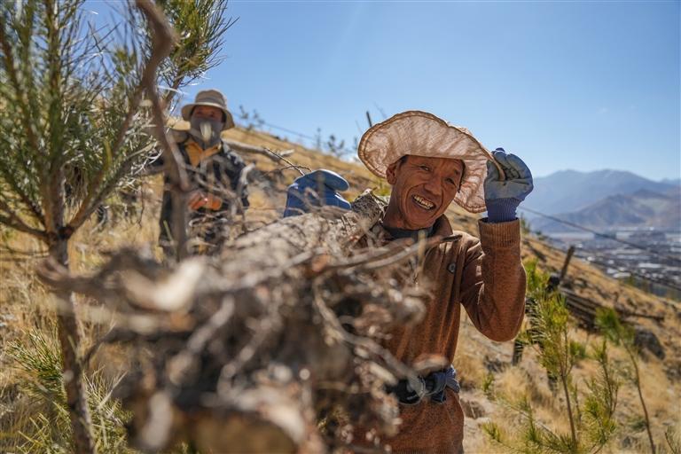 像旦增頓珠這樣依靠種樹增收的群眾還有很多。全區(qū)各級政府始終把促進群眾就業(yè)增收作為工程建設(shè)的出發(fā)點和落腳點,通過吸納群眾參與造林綠化,引導企業(yè)采購群眾苗木、租用機械等方式,帶動增收近18.6億元,惠及農(nóng)牧民群眾約500萬人次,努力將綠水青山、冰天雪地的“顏值”轉(zhuǎn)化為金山銀山的價值。