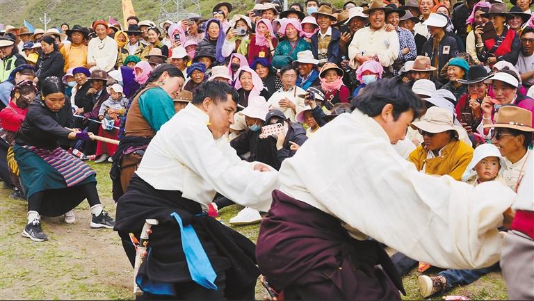 “‘繽紛四季·多彩林周’活動(dòng)內(nèi)容實(shí)在是太豐富了,我們沿途觀賞到了美景,而且還體驗(yàn)了西藏民俗風(fēng)情,現(xiàn)場(chǎng)看到村民們擠牦牛奶、手工制作奶制品、指尖技藝制作酥油花等。讓我們感到震驚的是藏族大哥、大姐的力氣真是太大了,能用繩子拉動(dòng)越野車,扛起百斤重的石頭,給我們帶來了滿滿的視覺盛宴。我是第三次進(jìn)藏,這次的收獲最多,讓我體驗(yàn)到了不一樣的西藏。”來自北京的游客張先生興奮地說。