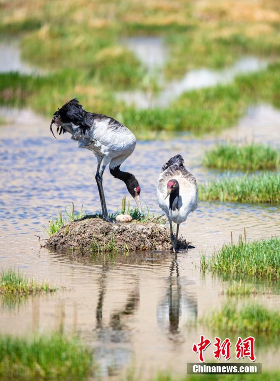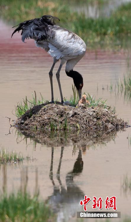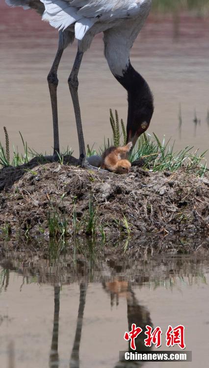 6月16日,在海拔4700米的西藏那曲市申扎縣,經(jīng)過34天的漫長(zhǎng)孵化期,一對(duì)黑頸鶴夫婦終于等來了自己的小黑頸鶴成功破殼出生。值得一提的是,黑頸鶴寶寶的誕生日也是2024年的父親節(jié),黑頸鶴父親在節(jié)日當(dāng)天喜獲最珍貴的禮物。據(jù)悉,黑頸鶴每窩通常產(chǎn)卵1-2枚,孵化期通常要33到35天。中新社記者 貢嘎來松 攝