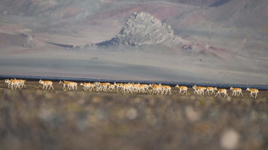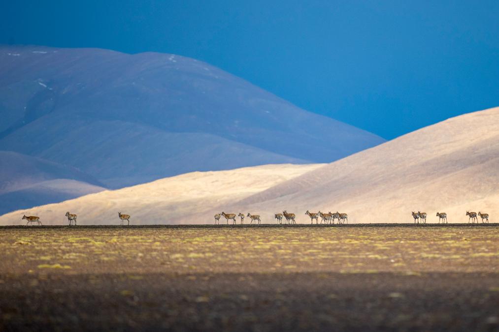 6月15日清晨在羌塘國家級自然保護區(qū)拍攝的遷徙中的母藏羚羊。