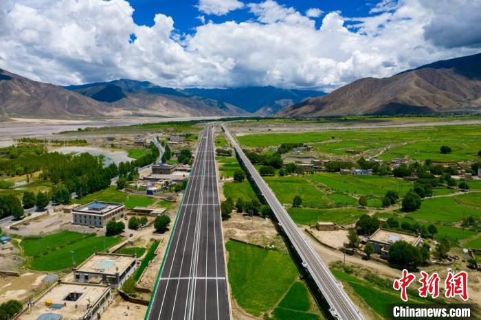 圖為西藏拉薩至日喀則高等級(jí)公路(左)和拉日鐵路(右)并行。(西藏自治區(qū)交通運(yùn)輸廳 供圖)