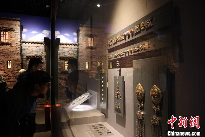 7月24日,參加“中國式現(xiàn)代化的萬千氣象·網(wǎng)絡(luò)名人青海行”活動的網(wǎng)絡(luò)名人,抵達(dá)江河源頭青海玉樹藏族自治州,在玉樹州博物館一覽自然與人文之美。玉樹州博物館是玉樹地震災(zāi)后重建十大標(biāo)志性建筑之一,分為序廳、自然展區(qū)、人文展區(qū)、臨時(shí)展廳。其通過實(shí)物標(biāo)本等方式,展示了三江源和可可西里的野生動物、草地、森林,以及玉樹州的歷史、建筑、服飾、飲食等。圖為玉樹州博物館內(nèi)的服飾文化展示。中新社記者 張?zhí)砀?攝
