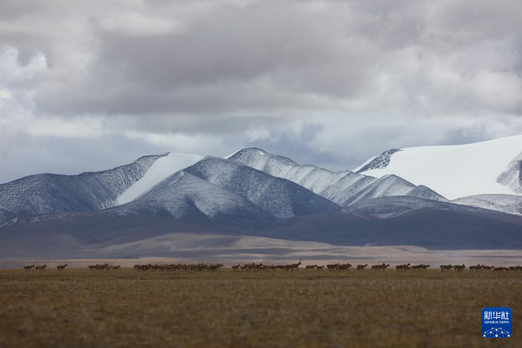 這是令戈錯(cuò)湖邊的藏羚羊群(9月8日攝)。新華社記者 劉詩平 攝