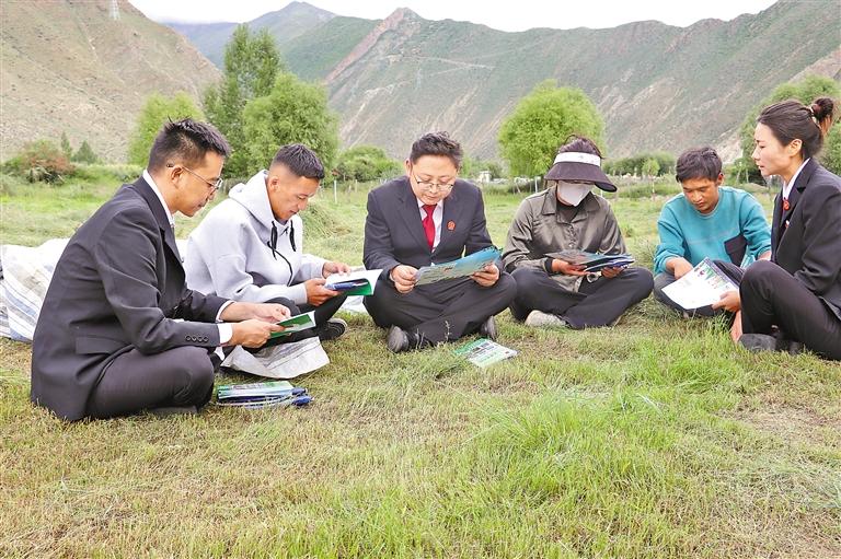 圖為山南市桑日縣人民法院干警在田間地頭為群眾宣傳法律知識。記者 巴桑旺姆 攝