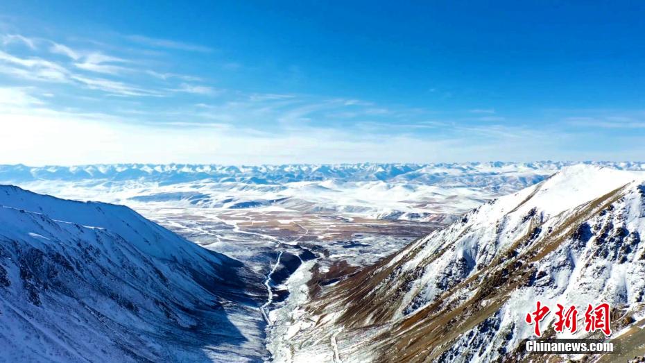 時(shí)值初冬,青藏高原已是一幅深冬景象。位于祁連山腹地的青海省海北藏族自治州門源縣境內(nèi),大地被大雪覆蓋,干凈如初,浩門河蜿蜒著穿境而過(guò)。祁連山脈東段最高峰崗什卡雪峰和七彩瀑布宛若大自然雕琢的藝術(shù)品,在陽(yáng)光的照耀下閃爍著光芒。圖為祁連山腹地被冬日暖陽(yáng)照射。
