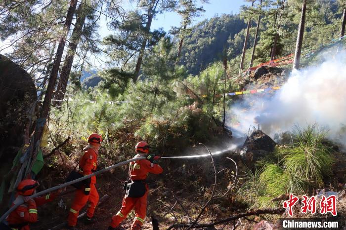 圖為消防員正在撲滅火源。西藏林芝市察隅縣森林消防中隊(duì) 供圖