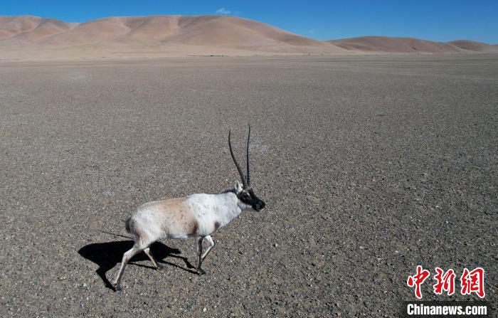 圖為12月8日,棲息在魯確塘草原的藏羚羊。(無人機照片)中新社記者 李林 攝