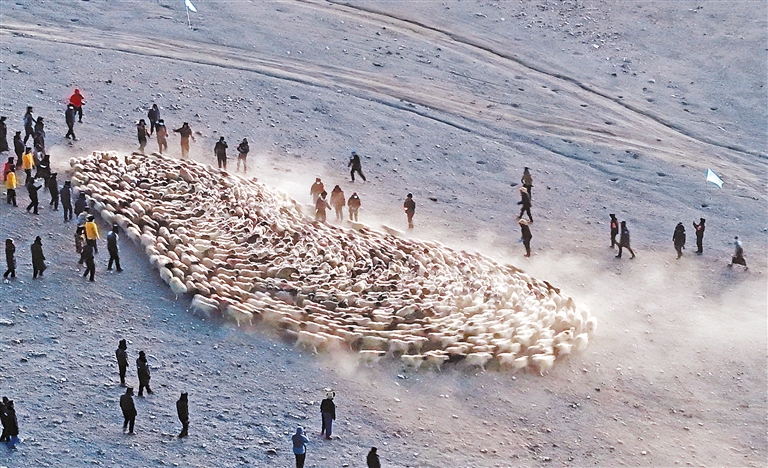 推瓦村牧民將羊群聚攏,準備轉(zhuǎn)場。