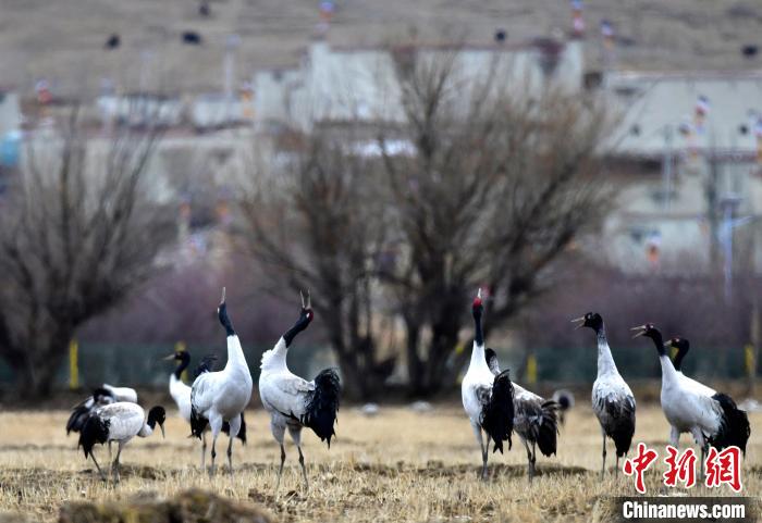 西藏拉薩:林周黑頸鶴田間“起舞”
