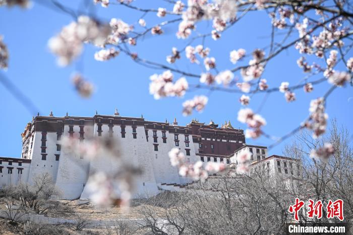 圖為帕邦喀周圍盛開的桃花和遠(yuǎn)處的布達(dá)拉宮。貢嘎來松 攝
