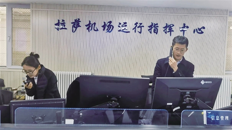 拉薩貢嘎國(guó)際機(jī)場(chǎng)運(yùn)行指揮中心緊急調(diào)度機(jī)位,保障旅客轉(zhuǎn)機(jī)。圖片由 張偉 提供
