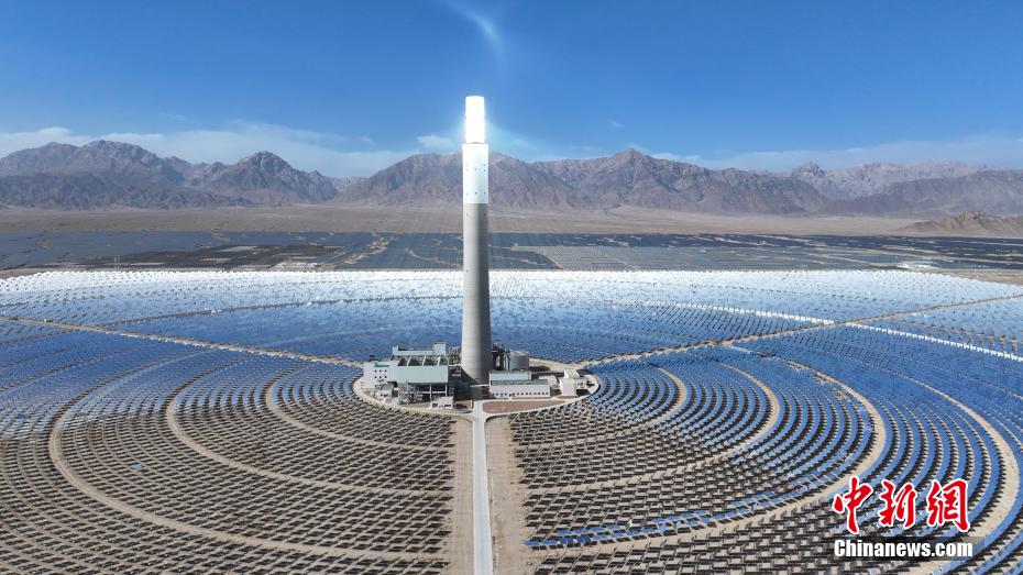 4月15日,航拍位于青海省海西蒙古族藏族自治州德令哈市境內(nèi)的青海中控50MW光熱電站,如戈壁灘上的“藍色海洋”。該光熱電站是中國首批光熱發(fā)電示范項目之一,也是全球首個年發(fā)電量超過年設(shè)計發(fā)電量的塔式熔鹽儲能光熱電站。裝機容量達50MW,鏡場采光面積達54.27萬平方米,配置有7小時熔鹽儲能系統(tǒng),每年可節(jié)約標(biāo)準(zhǔn)煤約4.8萬噸,減排二氧化碳氣體約12.4萬噸。(無人機照片)