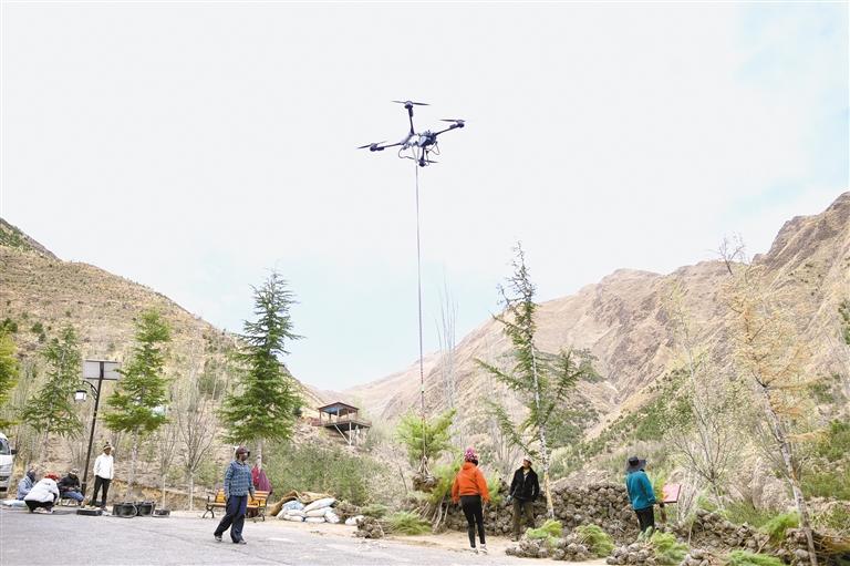 為了解決南北山綠化工程推進過程中存在的樹苗搬運耗時費力、效率低問題,西藏因地制宜、積極創(chuàng)新,推行無人機運輸苗木技術,極大提升了綠化工作的效率。無人機的使用能夠快速將樹苗精準投放到指定區(qū)域,以往需要數(shù)天才能完成的樹苗運輸工作,現(xiàn)在僅需幾個小時就能完成,大大縮短了綠化作業(yè)的周期。